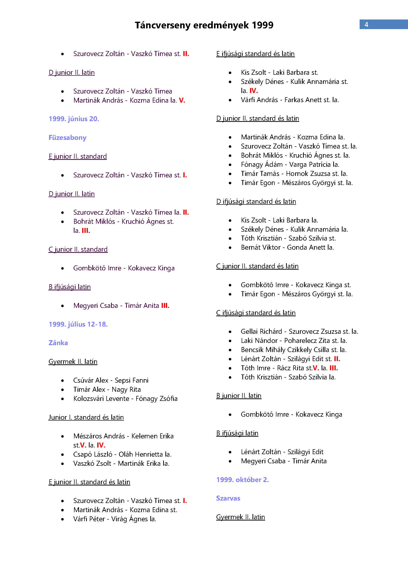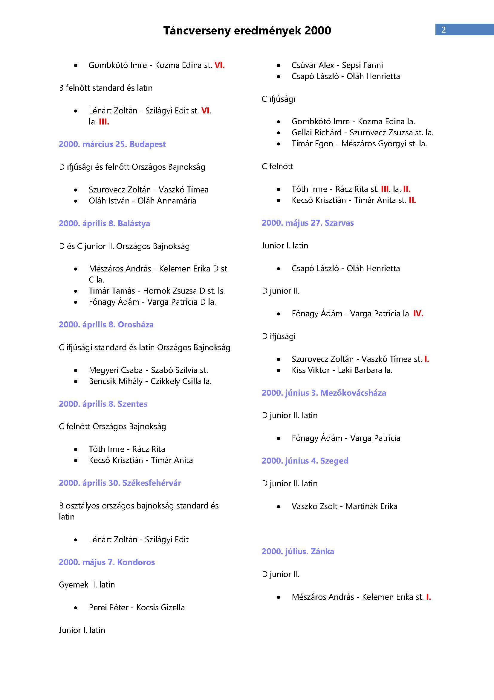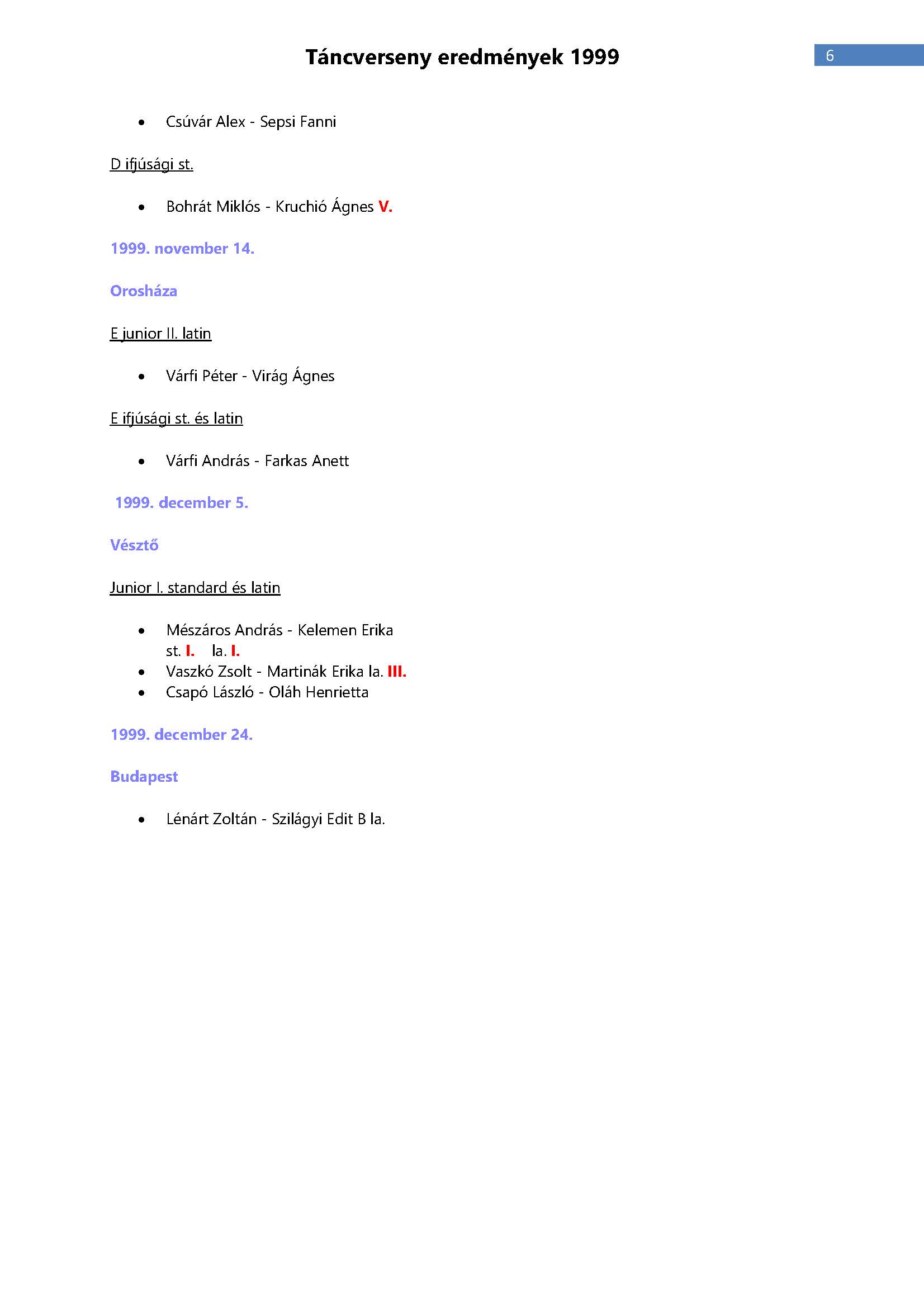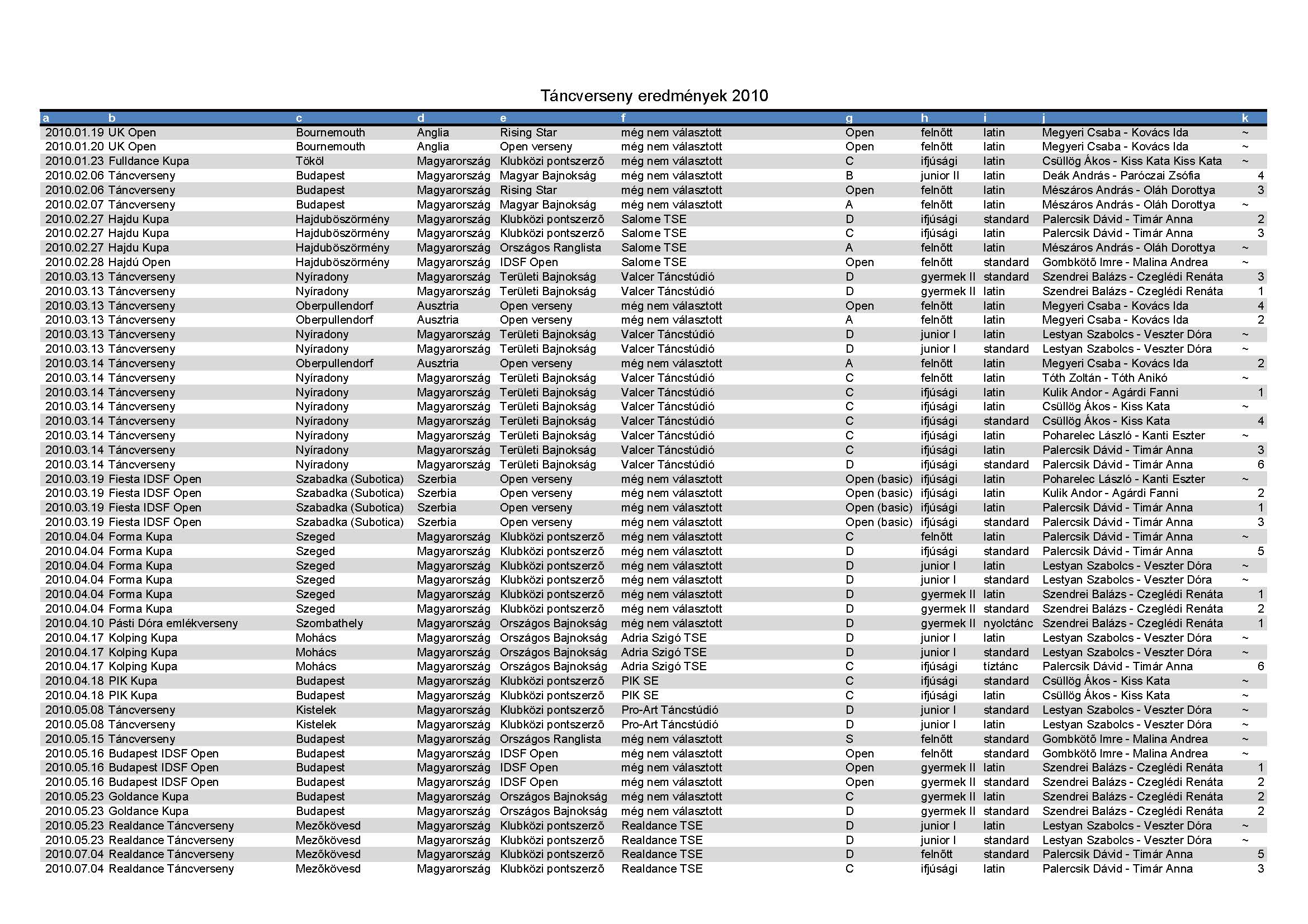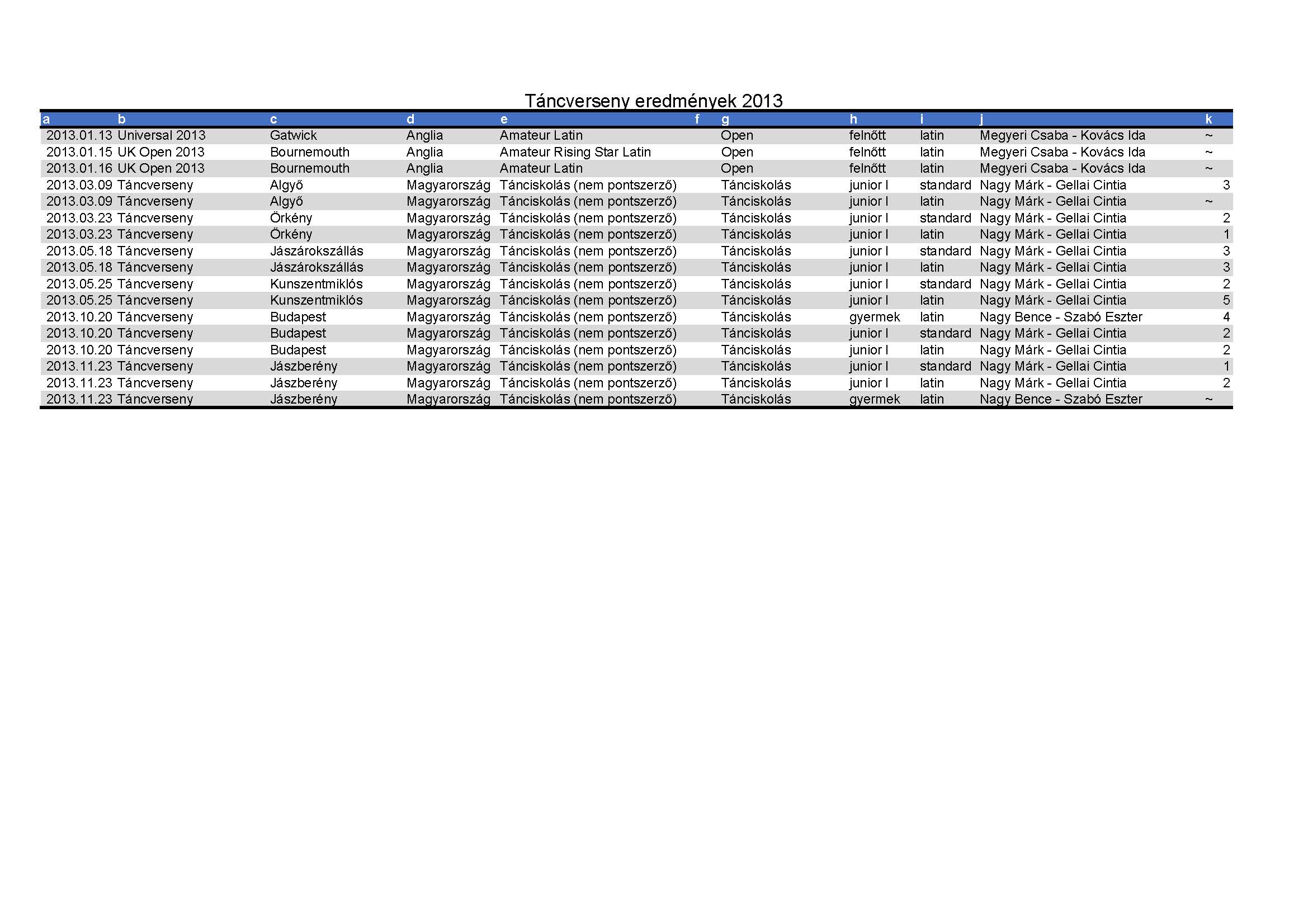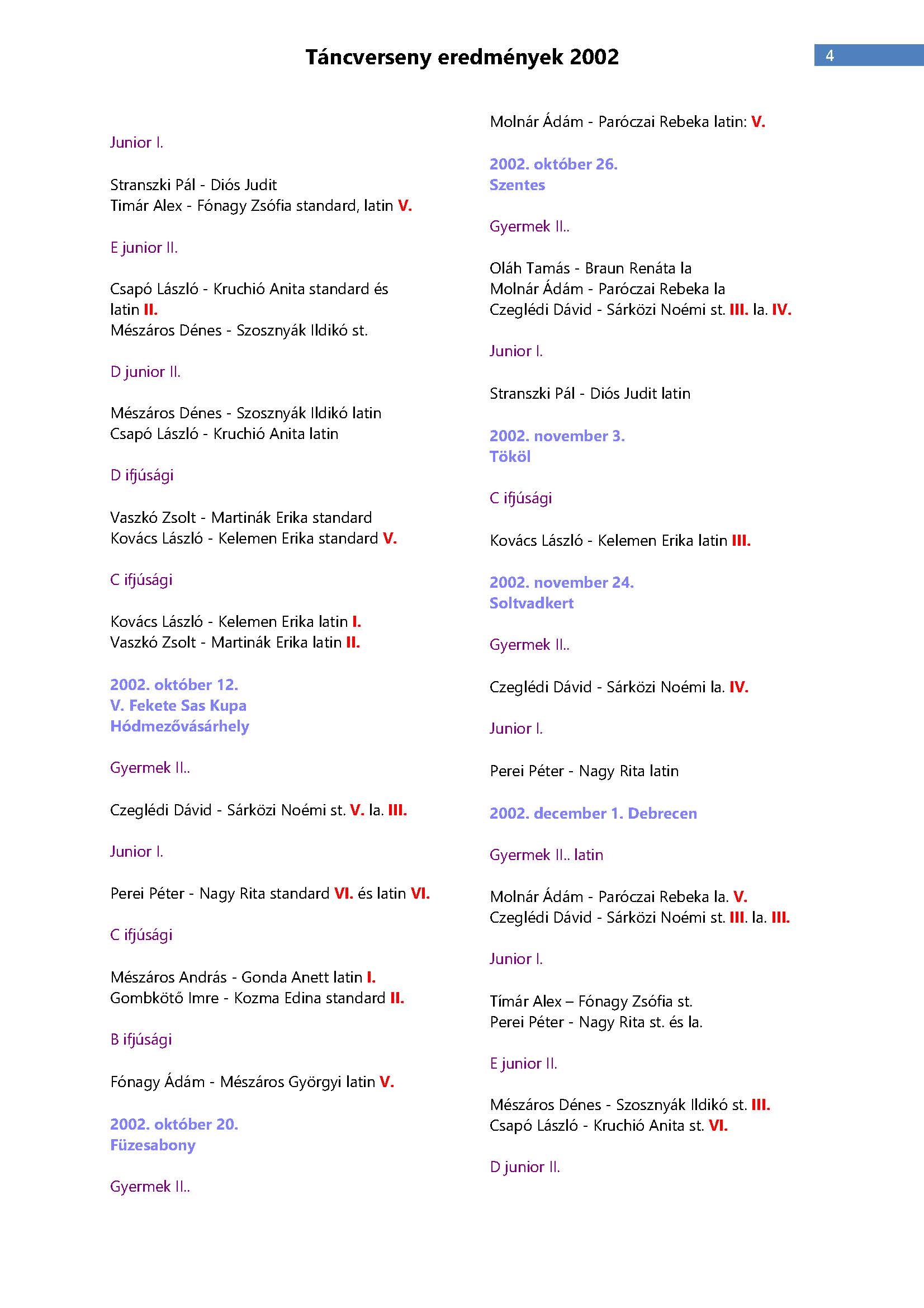 Versenyeredmények 1998-2016