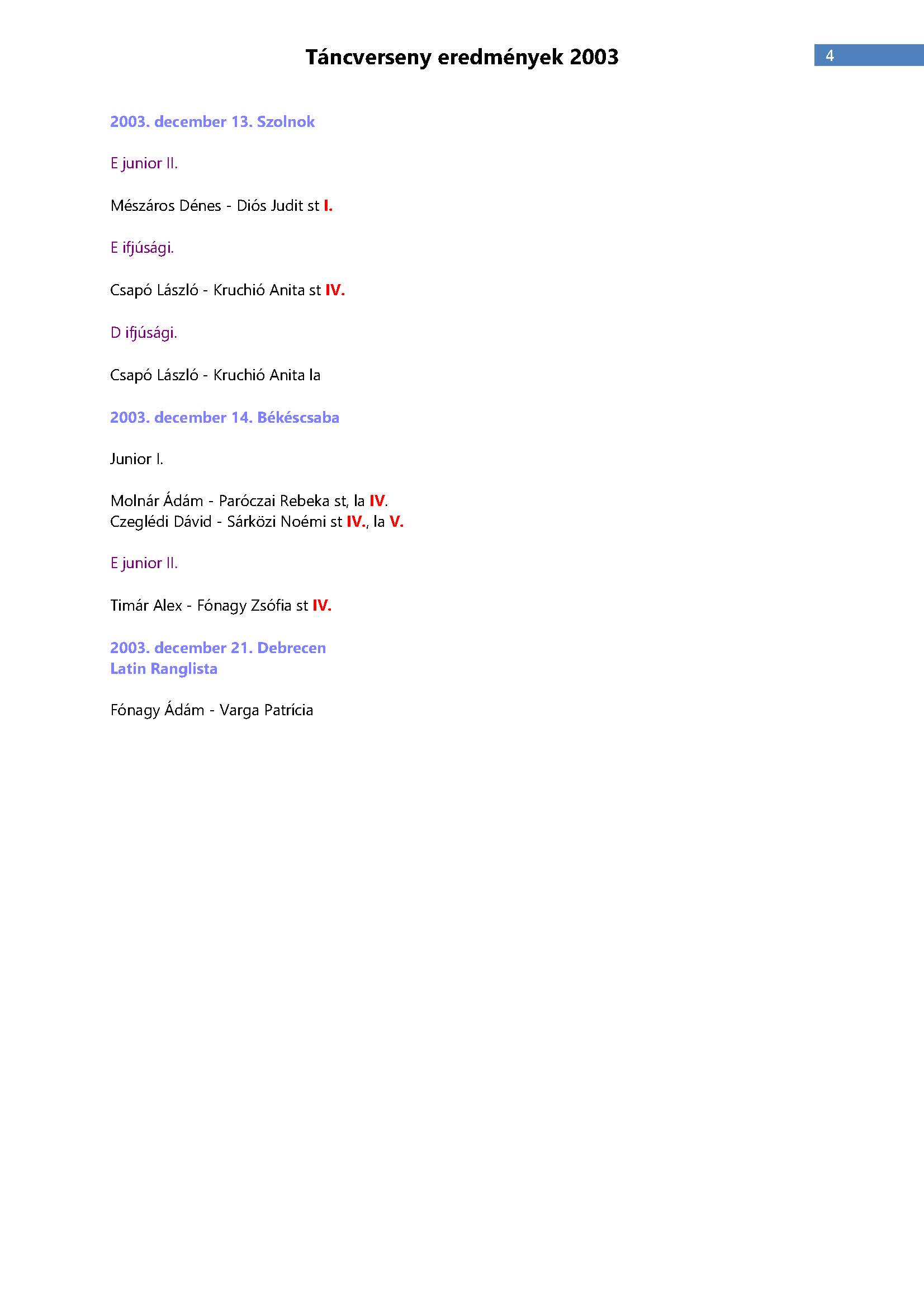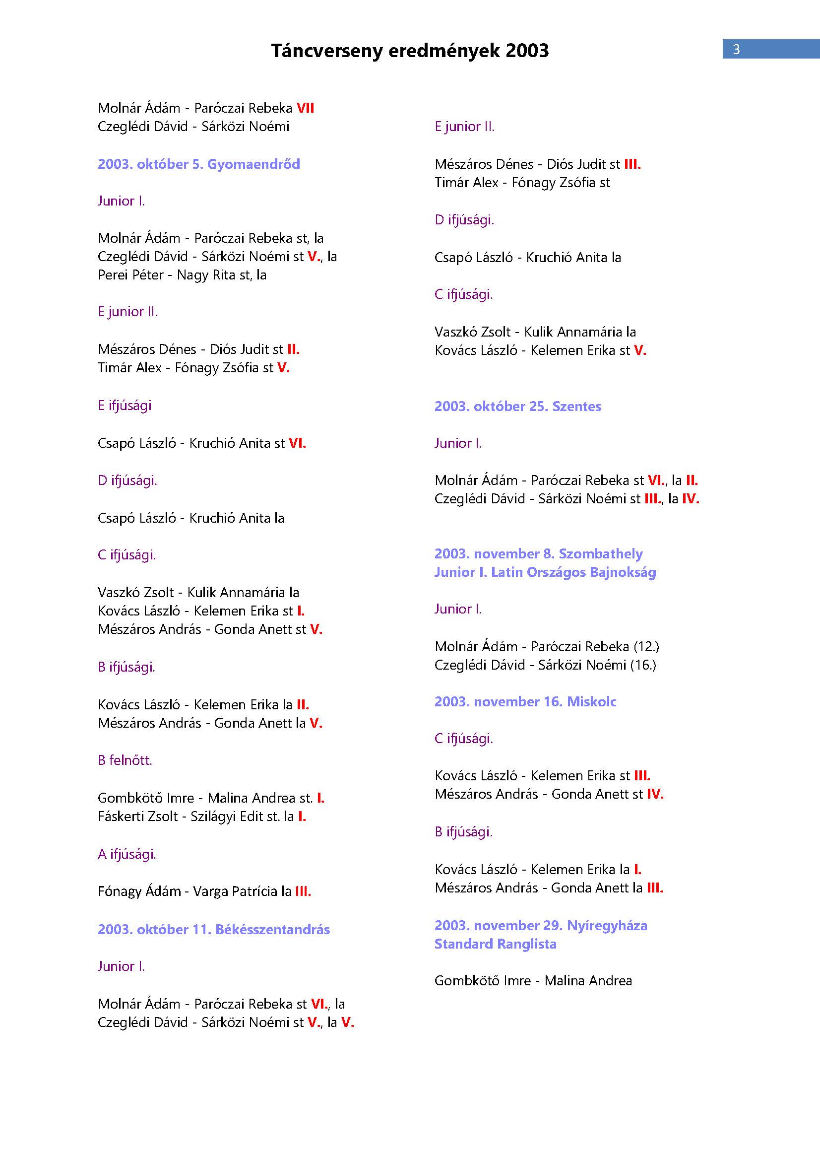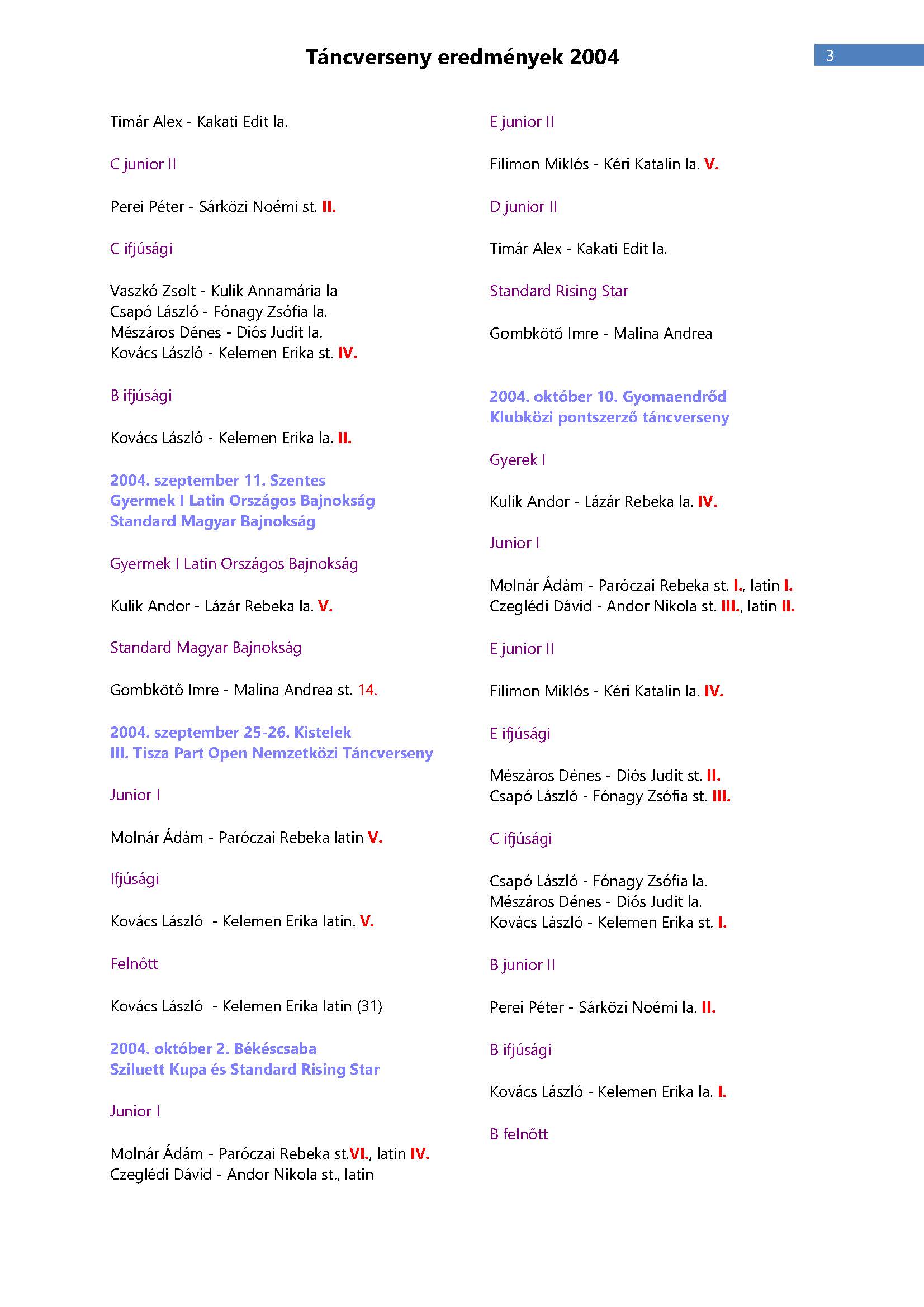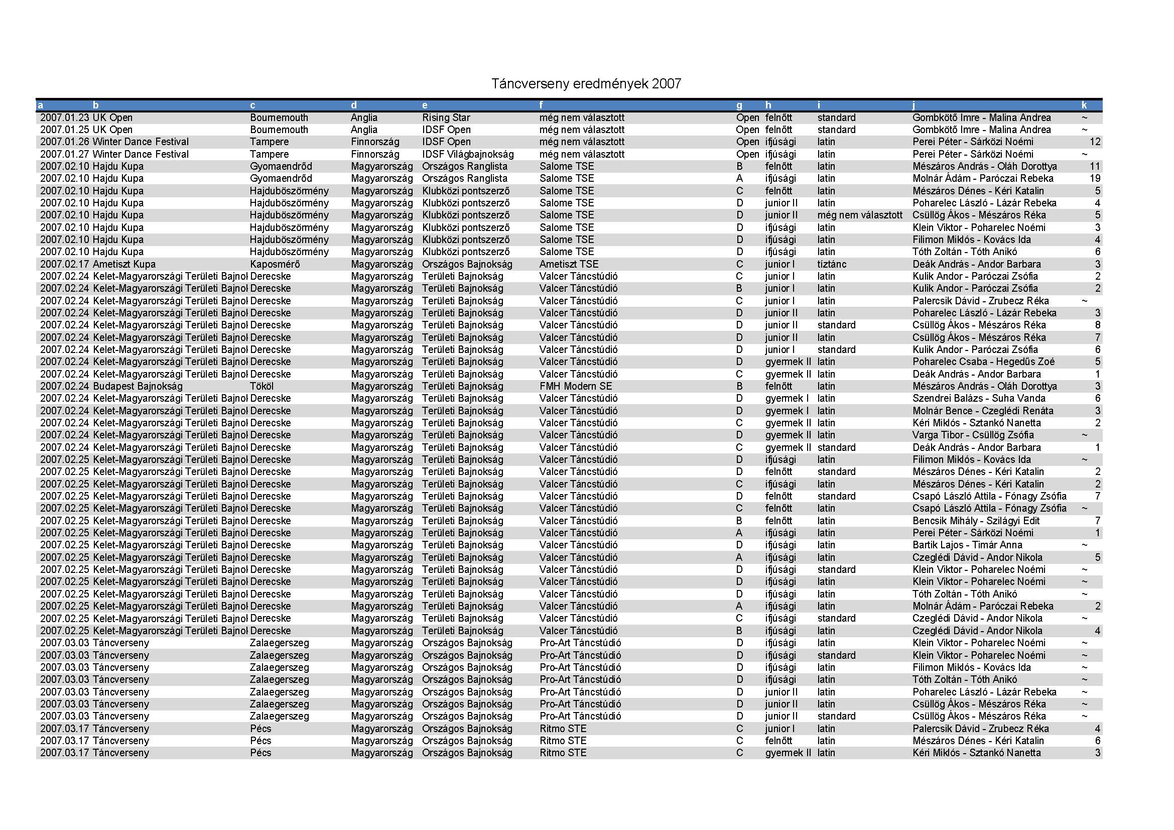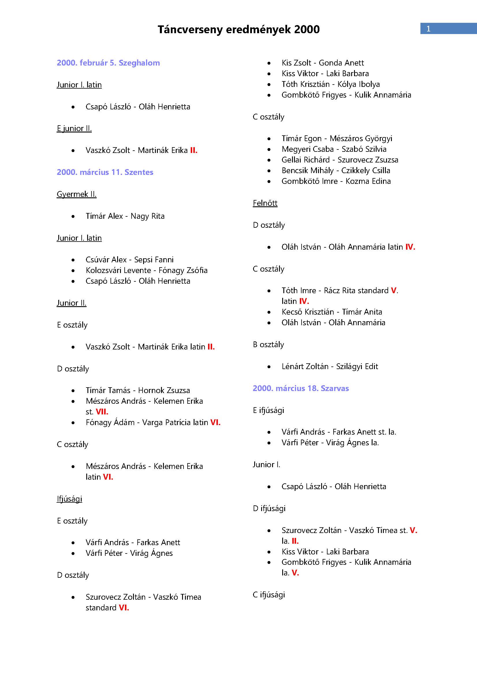 Versenyeredmények 1998-2016