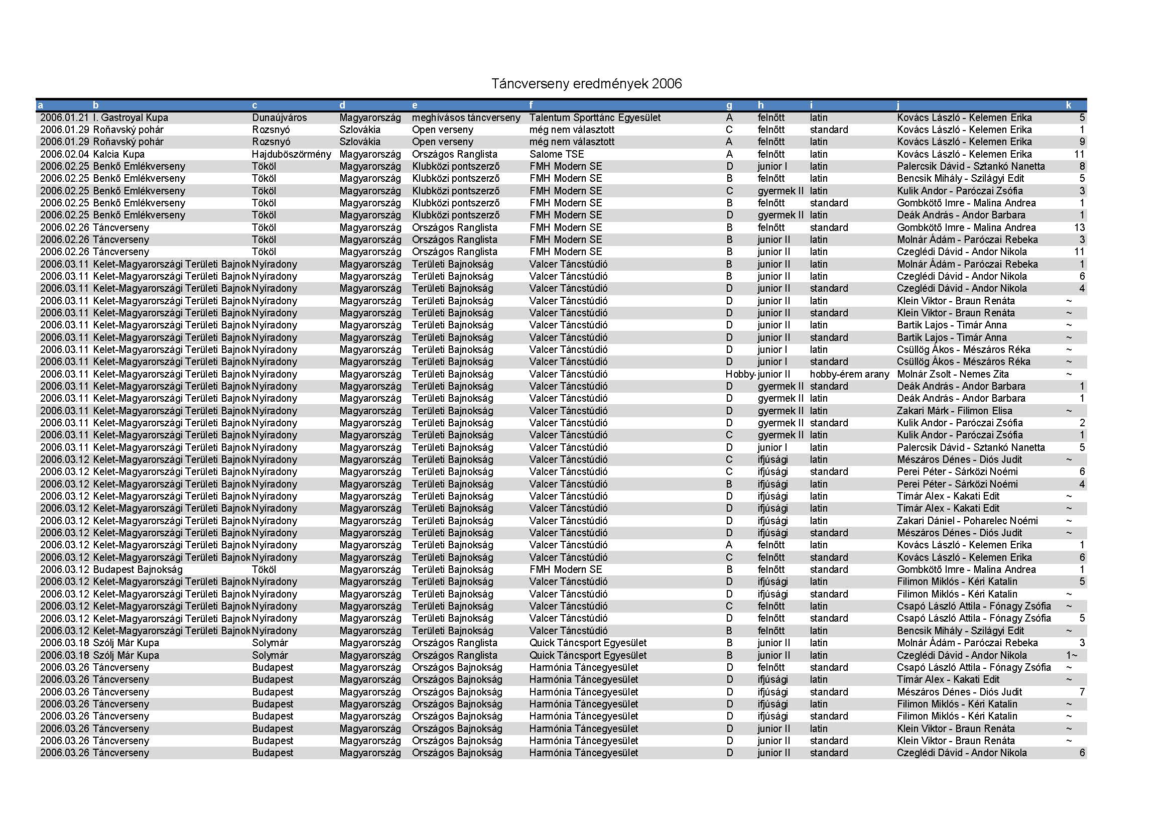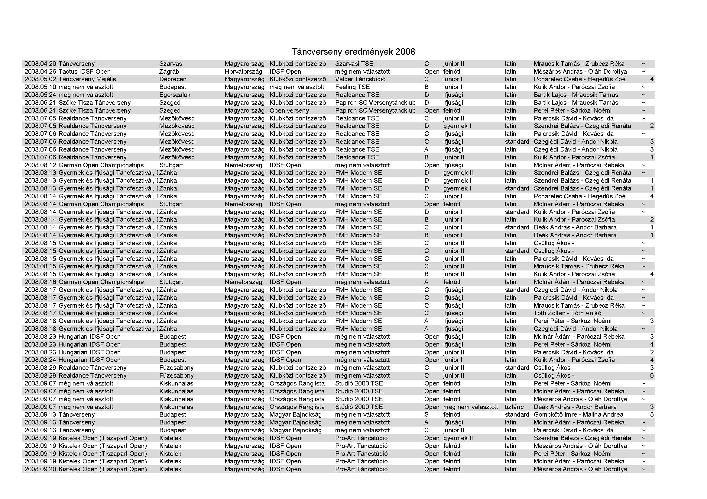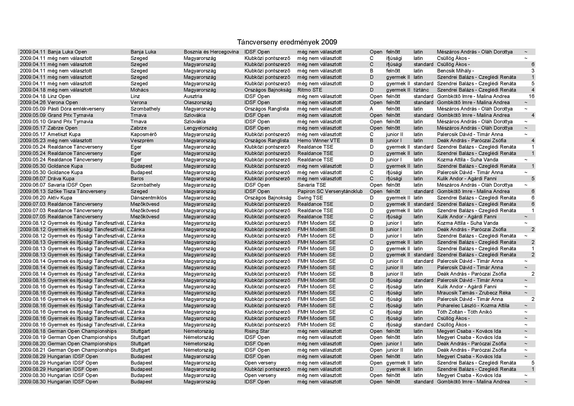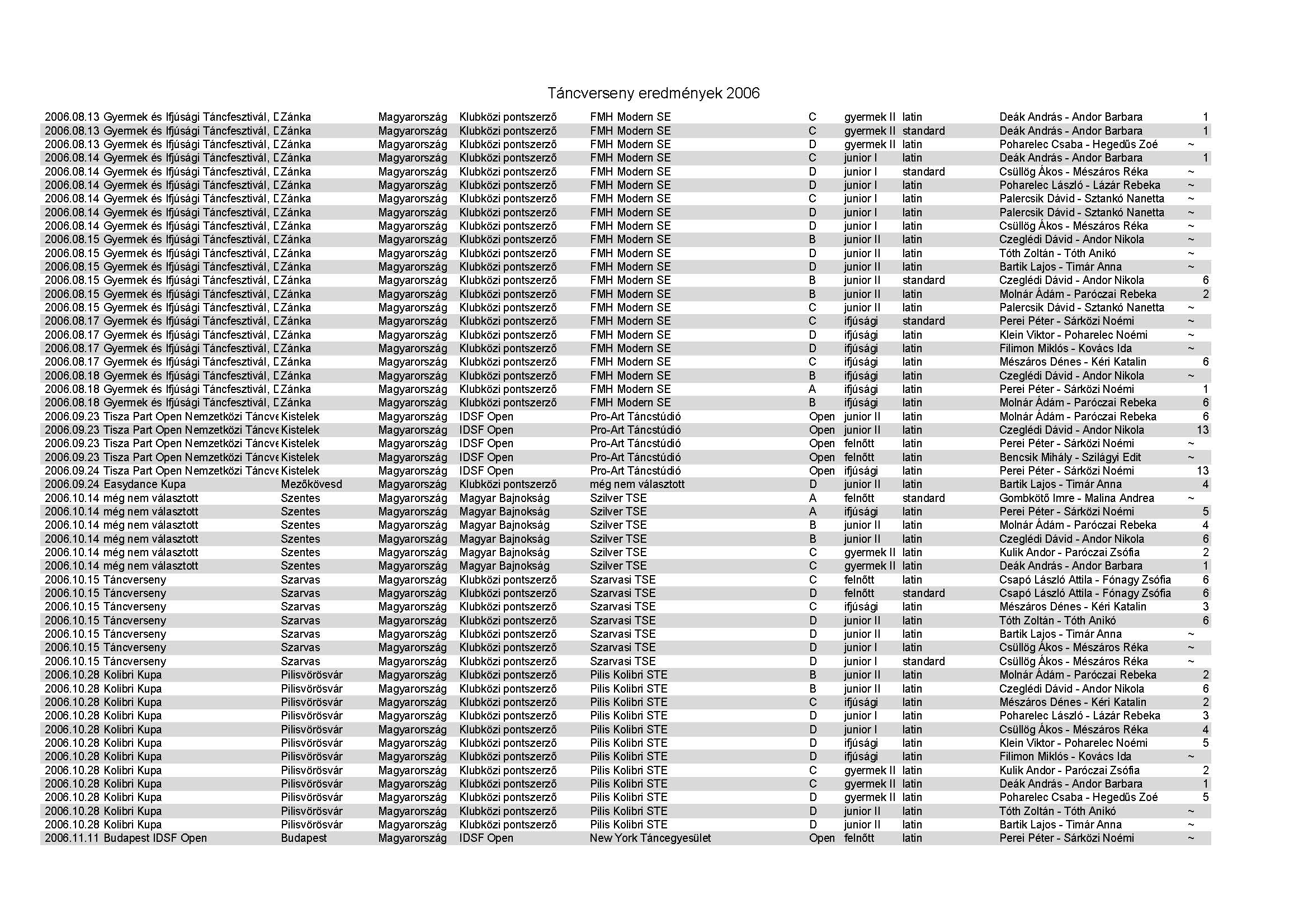 Amiről már nem készült hagyományos emlékkönyv. Táncverseny eredmények 1998 és 2016 között.